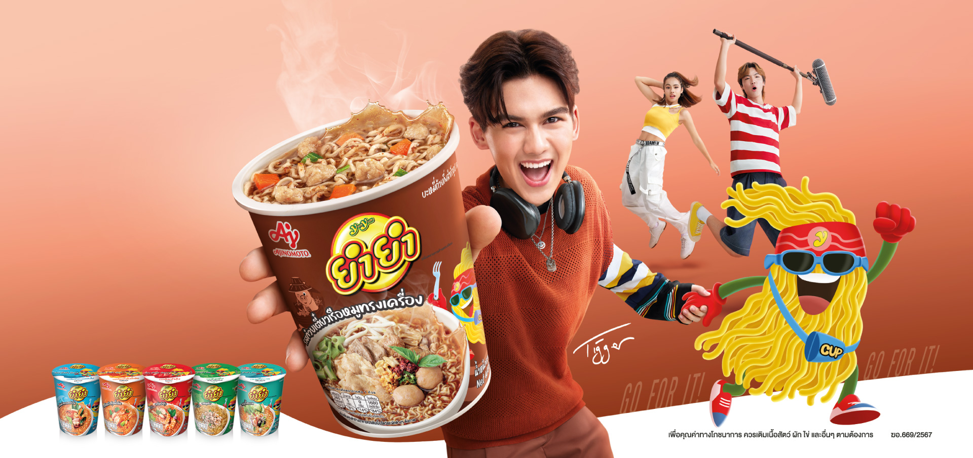 Instant cup noodles in new style, delicious with rich aroma and taste, full of meat and vegetables, very convenient by just open lid and pour hot water into cup, no need to tear seasoning sachet. Introducing new innovation of seasoning cube that combines powder and oil seasoning together to get more special rich taste which available in Tom Yum Kung and Miced Pork flavours