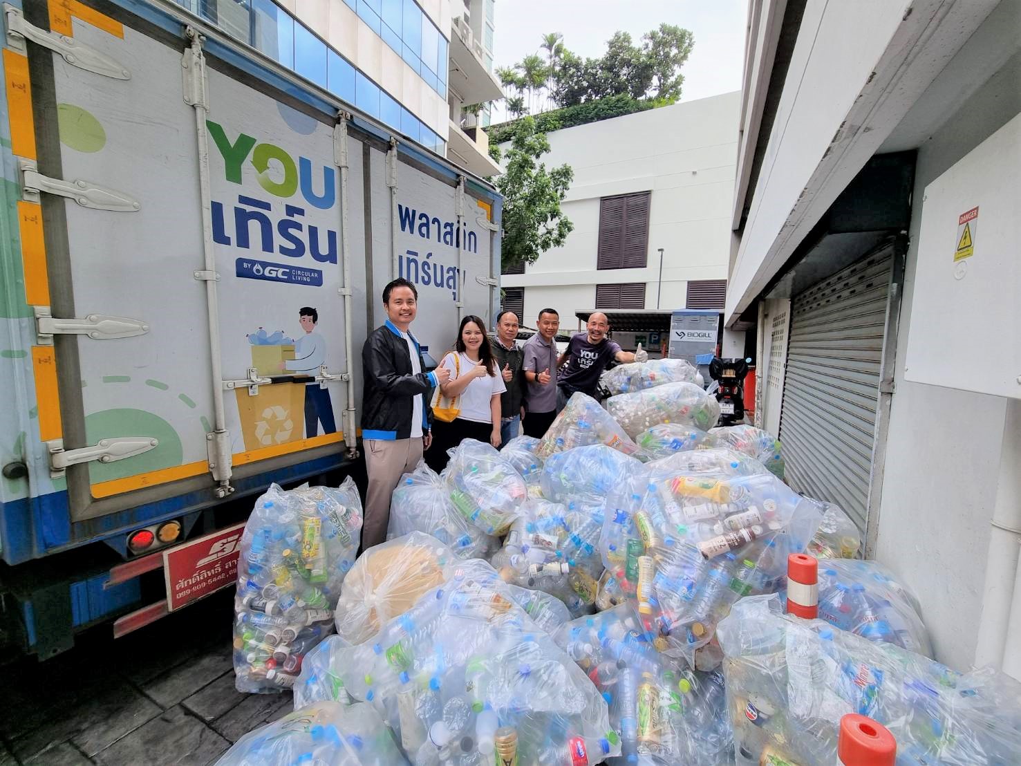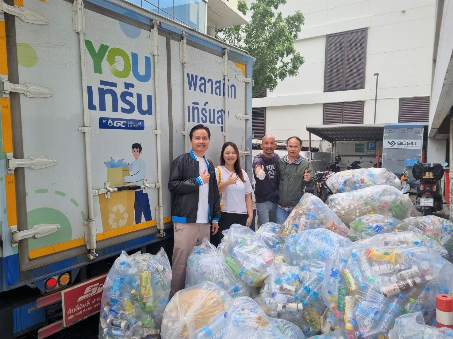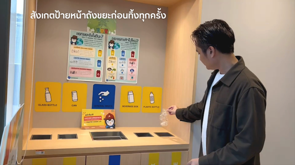 อายิโนะโมะโต๊ะ สำนักงานใหญ่ ได้มีการดำเนินการจัดการสิ่งแวดล้อมและของเสียตามหลัก 3Rs มาอย่างต่อเนื่อง ภายใต้โครงการสำนักงานสีเขียว (Green Office) โดยมีการจัดกิจกรรมส่งเสริมความยั่งยืน การให้ความรู้ รวมถึงรณรงค์ให้พนักงานคัดแยกขยะตั้งแต่ต้นทาง เราทำการรวมรวมพลาสติกใช้แล้วในชีวิตประจำวัน ซึ่งประกอบด้วย ขวดน้ำดื่มพลาสติก พลาสติกยืด และบรรจุภัณฑ์พลาสติกที่ใช้แล้ว โดยส่งมอบขวดน้ำดื่มพลาสติกให้กับ GC Youเทิร์น จำนวนมากกว่า 120 กิโลกรัม เพื่อนำเข้าสู่กระบวนการรีไซเคิล ภายใต้โครงการมือวิเศษ ในความร่วมมือของสำนักสิ่งแวดล้อม กรุงเทพมหานคร โดยขวดน้ำดื่มพลาสติกดังกล่าว จะถูกแปรรูปเป็นเส้นใยรีไซเคิล ทอเป็นผ้า และตัดเย็บเป็น “ชุดวิบวับสะท้อนแสง” เพื่อเพิ่มความปลอดภัยให้กับบุคลากรรักษาความสะอาด เจ้าหน้าที่กวาดถนน พนักงานขนขยะ ให้มีคุณภาพชีวิตที่ดีขึ้นด้วยชุดปฏิบัติงานที่ปลอดภัย ป้องกันกรณีประสบภัยต่างๆ จากขยะ และอุบัติเหตุที่ไม่คาดคิด
