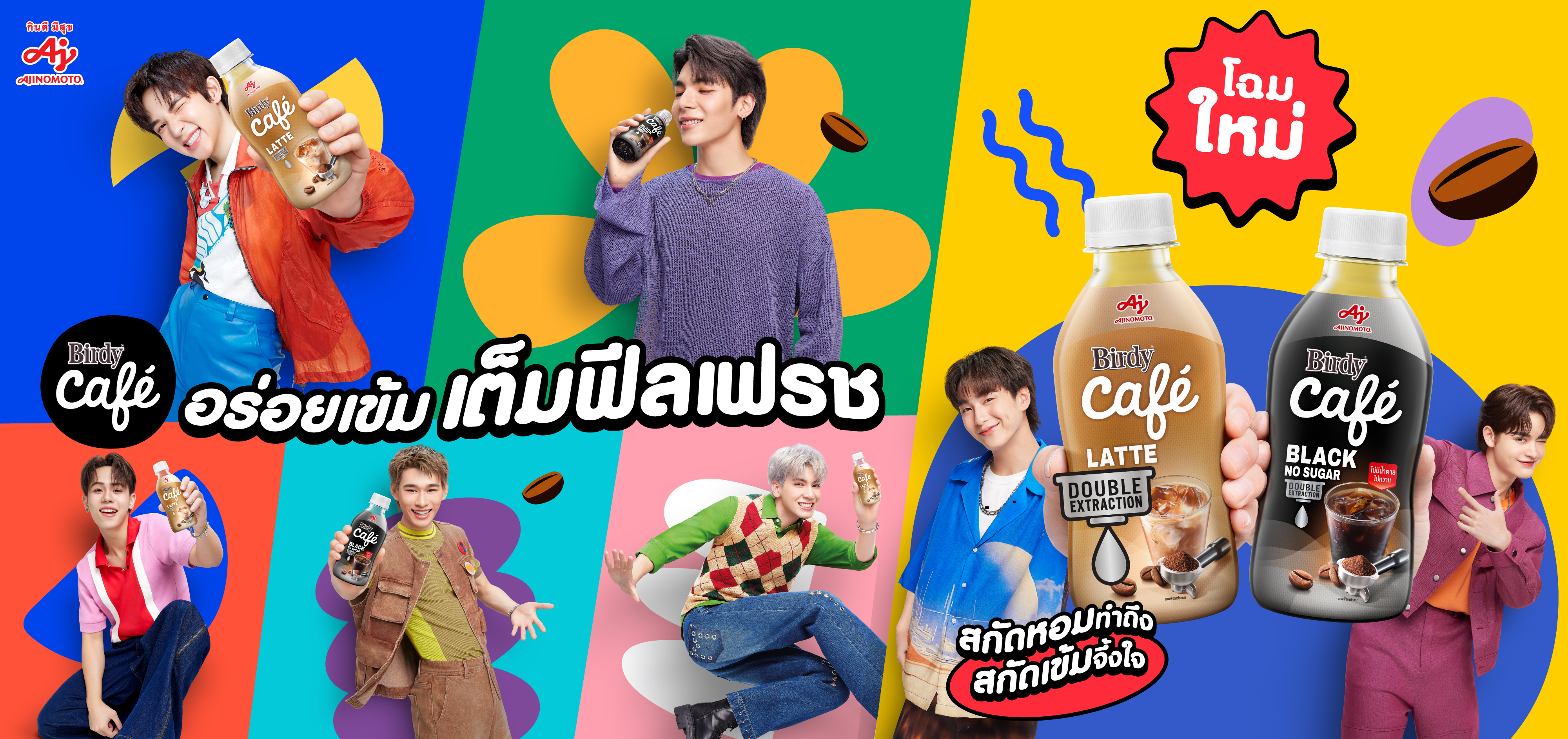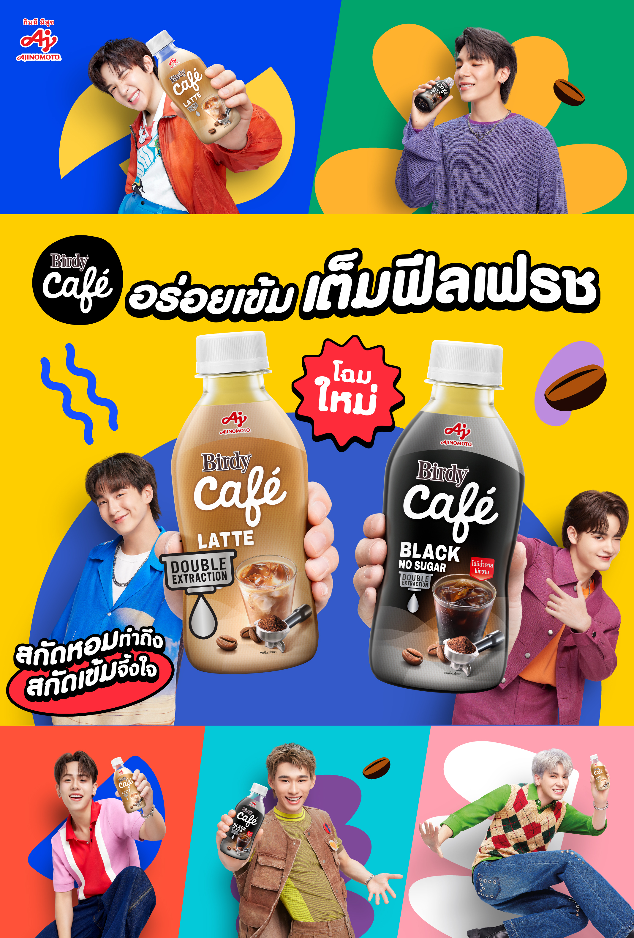 Birdy® Café กาแฟพร้อมดื่มในรูปแบบขวดที่รสชาติใกล้เคียงกาแฟชงสด เปิดความอร่อย! กาแฟคุณภาพ พร้อมเสิร์ฟ ด้วย Double Extraction ชั้นหนึ่ง เก็บความหอม ชั้นสอง เก็บความเข้ม มาพร้อมรสชาติใหม่! คาราเมลมัคคิอาโต และแบล็ค ยูซุ นอกจากนี้ยังมี Birdy® Home Café Black กาแฟดำแบบเข้มข้น ไม่มีน้ำตาล ไม่หวาน บรรจุในกล่องใหญ่ขนาด 1 ลิตร ที่ให้คุณครีเอตเมนูโดนใจได้หลากหลายและสร้างคาเฟ่ส่วนตัวได้ง่ายๆ ในทุกที่