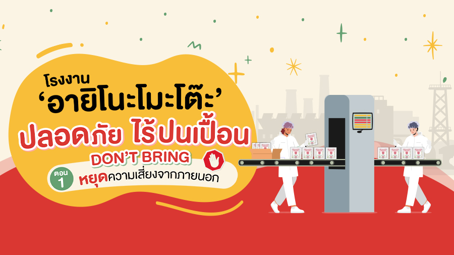 Don’t Bring หรือ การไม่นำสิ่งปนเปื้อนเข้าสู่โรงงาน เป็นเพียงด่านแรกเท่านั้น เรื่องราวสนุกๆ ของวิธีลดการปนเปื้อนของโรงงานของอายิโนะโมะโต๊ะที่ยังมีให้ติดตามต่ออีกมากมาย ใน ตอนที่ 2 : DON’T GENERATE ไม่สร้างสิ่งปนเปื้อน และ ตอนที่ 3 : REMOVE กำจัดออกดีที่สุด !